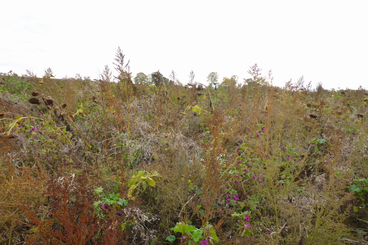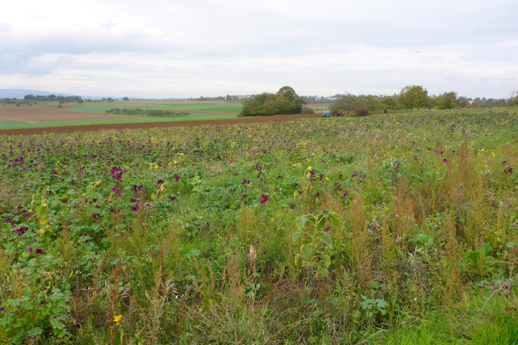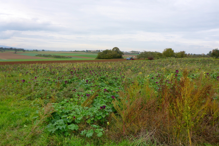 Im tristen Nebelregen suchen wir den Weg zum Bornheimer Hang. Der Hang besteht aus Kriegstrümmern der Stadt Würzburg. Hier war nach 1945 die Verwertungsanlage, die die Trümmer nach brauchbarem Material durchsuchte. Geblieben sind etwa 100 Höhenmeter, die wir per Treppe überwinden. Insgesamt werden wir über 600 Höhenmeter meistern.