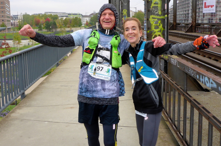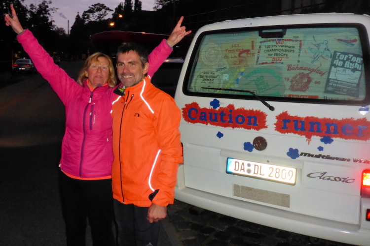 Es sind nur noch wenige Meter bis zum Ziel vor dem Höchster Schloss, Änschie und René erwarten uns vor ihrem Ultravan. Das tut gut. Es tut auch gut, dass Michael und Klaus uns auch nach Cut-Off finishen lassen.