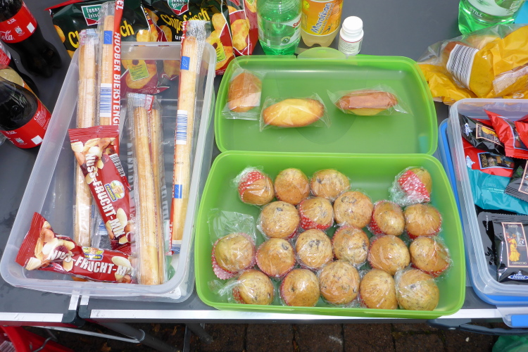 Ja, dieser Lauf ist als Ersatz für den Frankfurt Marathon gedacht, es gibt nur drei VPs, dafür aber besser ausgerüstet, und liebevoll mit eingepackten Törtchen bestückt. Es gibt gute Getränke in Einwegflaschen, die man beim nächsten VP oder im Ziel abgibt. Das ist schon ein gewaltiger Unterschied zum Stadtmarathon. 25 Euro haben wir als Startgeld gezahlt und lernen die schönsten Frankfurts kennen.