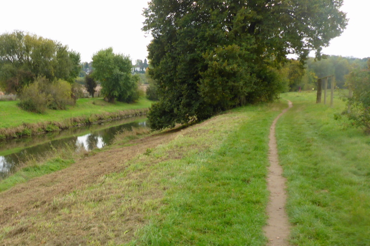 Grobes Ziel wäre jetzt der Ginnheimer Spargel, der Fernsehturm, doch wir biegen nach Norden ab und sehen den Taunus von einer ungewohnten Seite. Vor Preungesheim sind komische Bunkerreste in der schönen Wiese. Zwischen Berkersheim und Bonames treffen wir endlich auf die Nidda, die uns zum Ziel an deren Mündung in Höchst führen wird. Ich sage Jens, dem Besenradler, er könne uns nun allein lassen, dies ist meine Trainingstrecke. Nein, er hat einen Tracker, so weiß die Orga, wo wir sind.