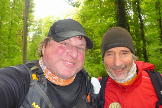 Bei der „Oberschweinstiege“, dem VP 1 haben wir also schon mal sechs Kilometer mehr auf dem Tacho. Michael Irrgang hat zum Glück noch Sicherheitsnadeln parat.