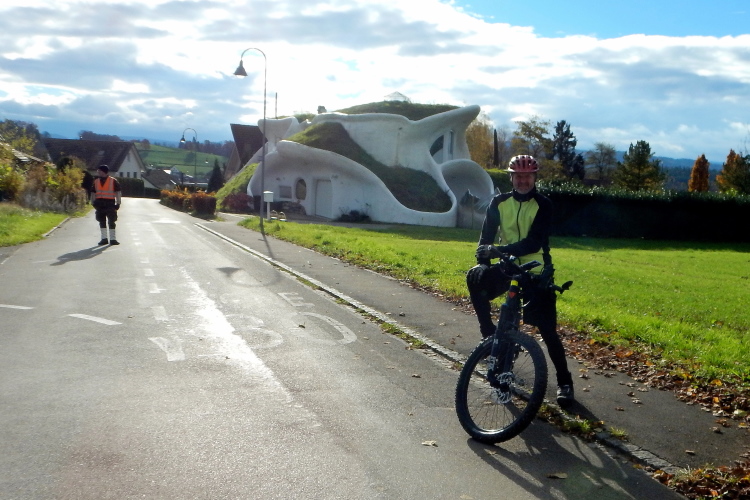 Nächster Fixpunkt ist das Erdhaus beim Dorfeingang von Matzingen. Beim Teletubby-Haus, wie es ein anderer Läufer nennt, geht es links ab und mit leichtem Gefälle weiter. Ausgangs Dorfes sind wieder positive Höhenmeter angesagt, welche am Ende der Steigung mit der ersten Verpflegungsstelle belohnt werden. Die Belohnung ist leider nicht vollständig. Entgegen den Gepflogenheiten vergangener Jahre und den Angaben zur Verpflegung auf der Webseite fehlt ein isotonisches Angebot. Zwar bin ich mit zwei Gels und einer Flasche Cola ausgerüstet, da es bis zur Halbmarathonmarke nur noch einen weiteren Verpflegungsposten gibt. Aber damit hatte ich nicht gerechnet.