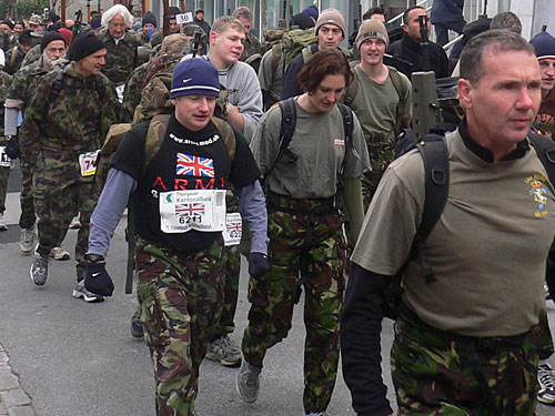 Die Musikkapelle spielt Marschmusik. Es ist zu kalt, um rum zu stehen. Jeder ist irgendwie in Bewegung. 30 Minuten nach den Waffenläufern startet der „Marathon der Zivilläufer“ dann nicht ganz so spektakulär.