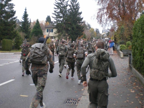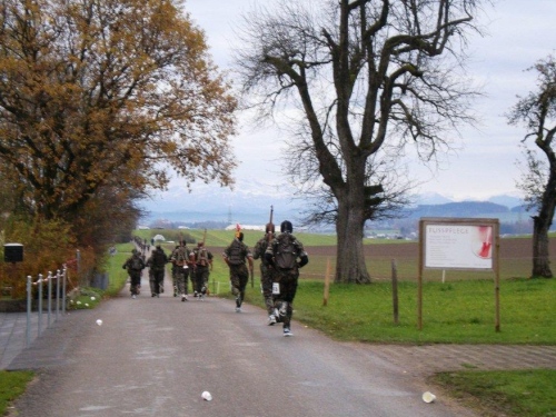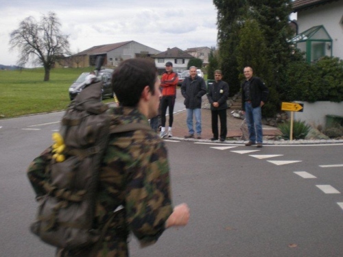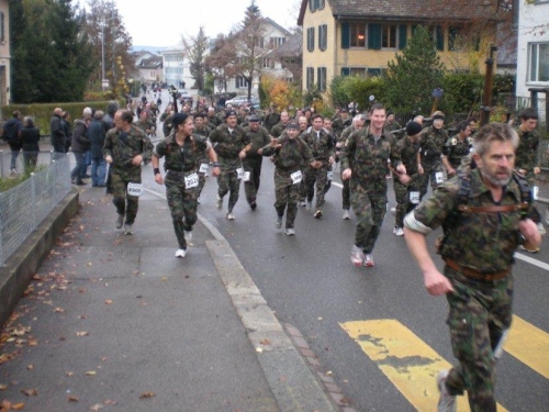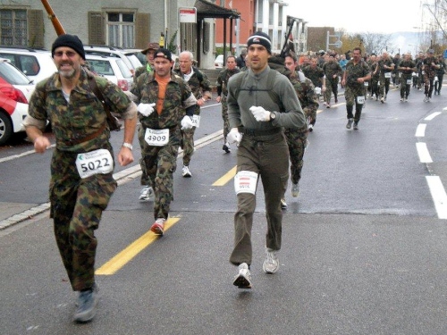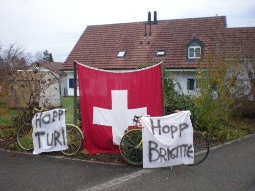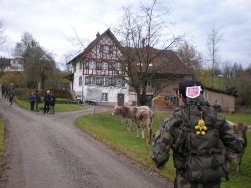 Auch ich erkenne ein bekanntes Gesicht unter den Zuschauern. Es ist Toni, ein ehemaliger langjähriger Arbeitskollege, den ich seit bald zehn Jahren nicht mehr gesehen habe. Er scheint mich aber nicht zu erkennen. Kein Wunder, als Anhänger militärischer Bräuche und als besonders sportlich hat er mich nie kennengelernt. Und weil es gerade bergab geht, sehe ich davon ab anzuhalten und nehme das Momentum für die nächste Gegensteigung mit.