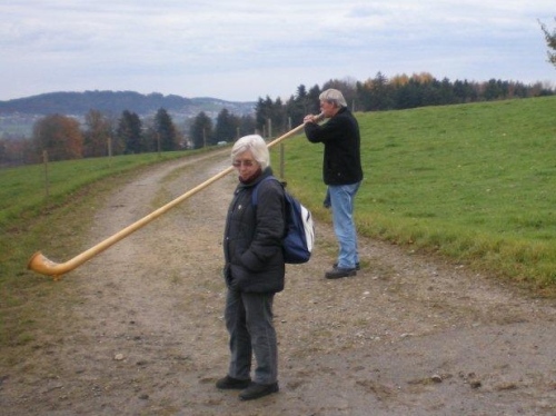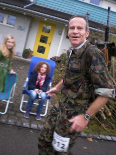 Ablenkung bietet der Alphornbläser an der gleichen Stelle wie im Vorjahr. Vor allem aber die zahlreichen Zuschauergruppen, welche die Strecke säumen. Es macht den Eindruck, dass es für jeden Ehrensache ist, an der Strecke zu stehen, wenn er einen Bekannten mitlaufen hat. Mir fällt die ehrliche Bewunderung und Anerkennung auf, die jedem von uns zuteilwird. Ich darf mich als kleiner Held fühlen.