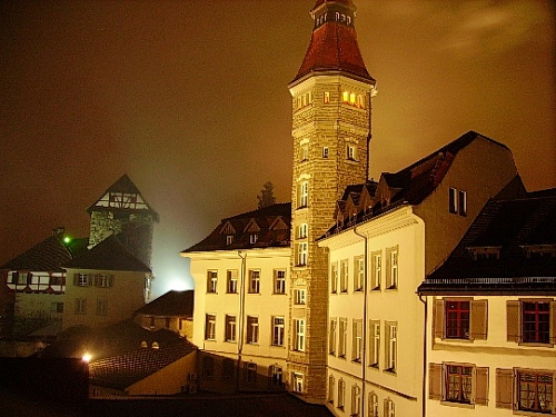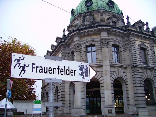 Am Vorabend bin ich mit Evi in Frauenfeld. Um 17h ist es schon finster, die letzten km sind wir im Nebel gefahren. Das Hotel liegt unmittelbar am Marktplatz, wo der Start erfolgen wird. Damit ist es auch nur ein paar hundert Meter von der Kaserne, dem Ziel, entfernt. Wieder ein Marathon der kurzen Wege also. Über beide Bewerbe sind 365 Teilnehmer angemeldet, beim Halbmarathon – der Start wird in Wil sein – mehr als doppelt so viele.