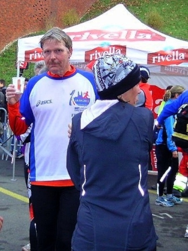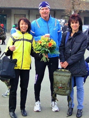 Am Marktplatz treffe ich bald die Moni aus Lommis. Auch sie ist guter Dinge. D’Moni wird heute wohl einmal mehr aufs Stockerl laufen. Sie muss sich noch umsehen, wer von der Konkurrenz am Start ist. In der Startaufstellung lerne ich Ernst aus der Steiermark kennen. Im Gespräch kommen wir drauf, dass wir beide unseren letzten Marathon 2011 für Pisa geplant haben. Bei ihm wird es der 18. heuer sein. So sieht also der heutige Sieger der Nationenwertung Ö aus! Wir wünschen uns Alles Gute und Auf Wiedersehen in Pisa!