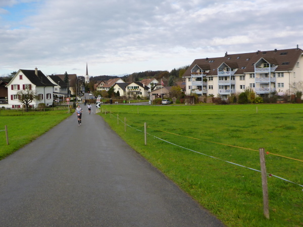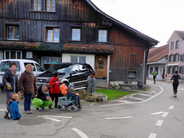 Flach geht es weiter. Immer wieder stehen auch an entlegenen Stellen Zuschauer, die jeden Vorbeikommenden kräftig anfeuern. Wir streifen kurz Wängi, um dann in Rosental von Helfern gesichert die Straße und die Schienen der Frauenfeld-Wil-Bahn zu überqueren.