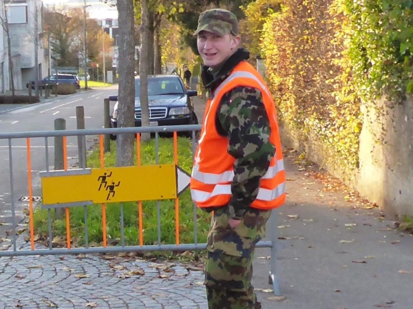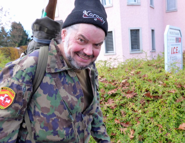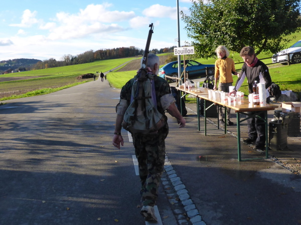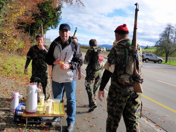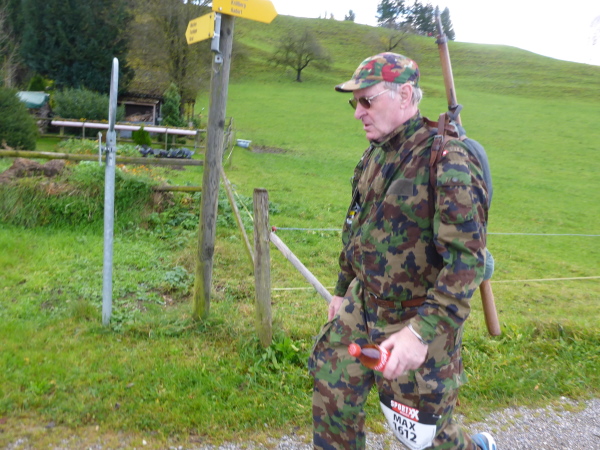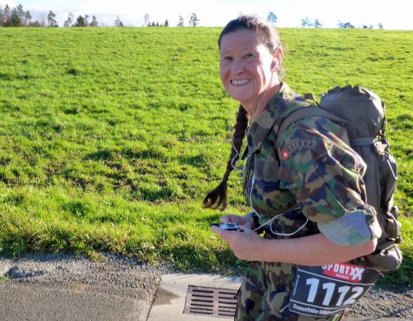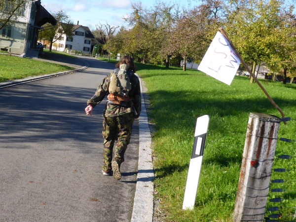 Jetzt sammle ich immer häufiger Waffenläufer ein. Natürlich versäume ich nicht, jeden gebührend anzufeuern. Mit diesem Gewicht auf dem Rücken würde ich keine 5 km weit kommen. Jedes Mal antworten die Angesprochen freundlich zurück. So vergeht die Zeit wie im Flug.