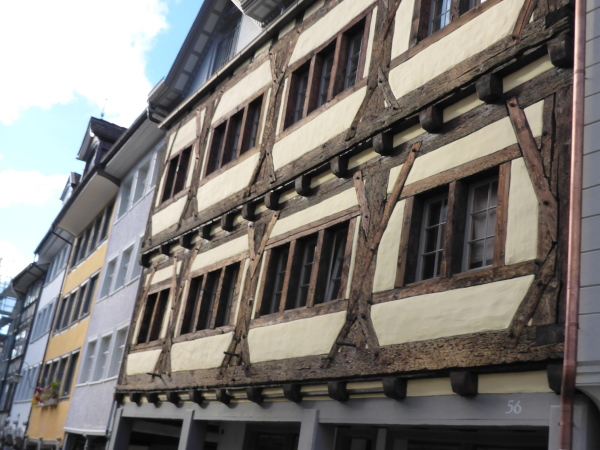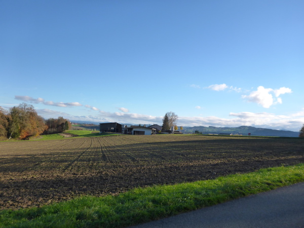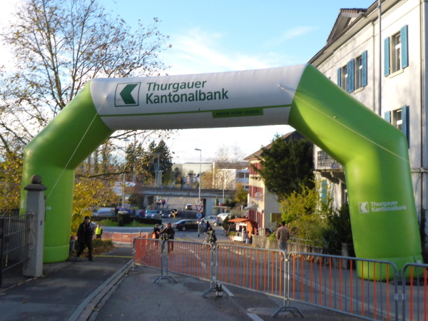 Nach Sirnach verläuft die Strecke flach. Unterwegs passieren wir einen verträumten Weiler mit alten Fachwerkhäusern. Die Zuschauer sind hier top motiviert. Hinter dem km 15 Schild weisen uns Helfer scharf rechts unter der Bahn hindurch und auf der anderen Seite steil bergauf. So umgehen wir den Ortskern.