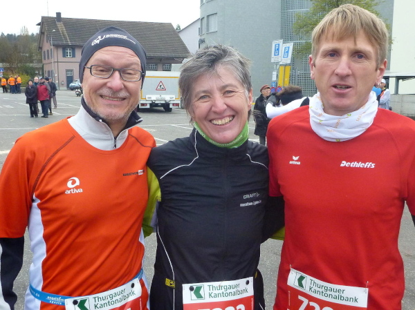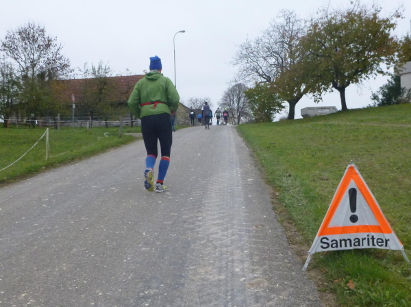 Das Feld sortiert sich schnell. Norbert und ich reihen uns hinten ein. Im Pulk laufen wir durch die gesperrten Straßen von Frauenfeld. Es geht schon gleich bergauf. Zuschauer stehen rechts und links der Straße und applaudieren. Ich verringere mein Tempo. Unglaublich, wie hier alle rennen. Als ich ins Gehen falle, verabschiedet sich Norbert und läuft in lockerem Tempo weiter. Ich werde nach hinten durchgereicht.