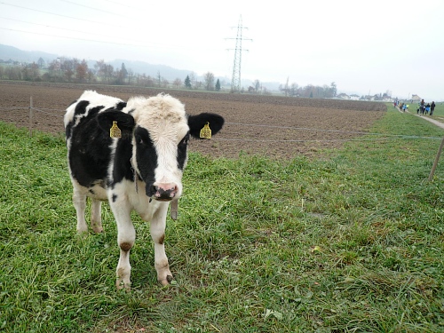 Etwa bei Kilometer 23 verlassen wir das nette Städtchen. Während für uns die Strecke alle fünf Kilometer markiert ist, finden die Halbmarathonis jeden Kilometer signalisiert. Nach einem kleinen Anstieg geht es etwa 150 Meter durch ein Wiesengelände. Durch die Trockenheit ist der Trampelpfad natürlich in einem rustikal-ruppigen und buckligen Zustand. Ein Athlet hat sich wohl den Fuß vertreten und steht an einem Baum. Oder es ist ein Muskelkampf. Von grasenden Kühen sind Minen verlegt. Ab Bronschhofen gehen die nächsten Kilometer gehen tendenziell bergab (bis Kilometer 30), man kann hier Tempo machen. Aber überziehen darf man (noch) nicht.