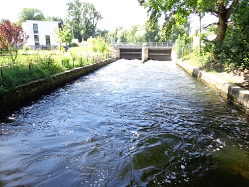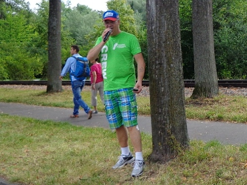 Hier gibt es den nächsten Versorgungspunkt. Der nächste Steckenabschnitt wird etwas holprig, ist aber schön flach. Der Biergarten vom „Deutschen Kaiser“ ist noch nicht geöffnet, aber interessierte Zuseher gibt es wieder. Kurz nach einer Eisenbahnunterführung haben es sich Anwohner mit Tisch und Stühlen bequem gemacht und machen gerade die Welle „La Ola“, als ich vorbei komme.