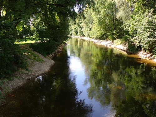 Km21 nach 2h07min; Die zweite Hälfte fängt ja gut an. Ich fülle bei der V-stelle etwas Wasser in meine Flasche, sicher ist sicher. Sehr zu meiner Freude geht es die nächsten 2km den Lech entlang, immer im Halbschatten, ein kühlendes Lüftlein weht vom Fluss her. Km22 – Dieser Meilenstein zeigt Astrid Lindgren.