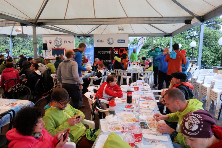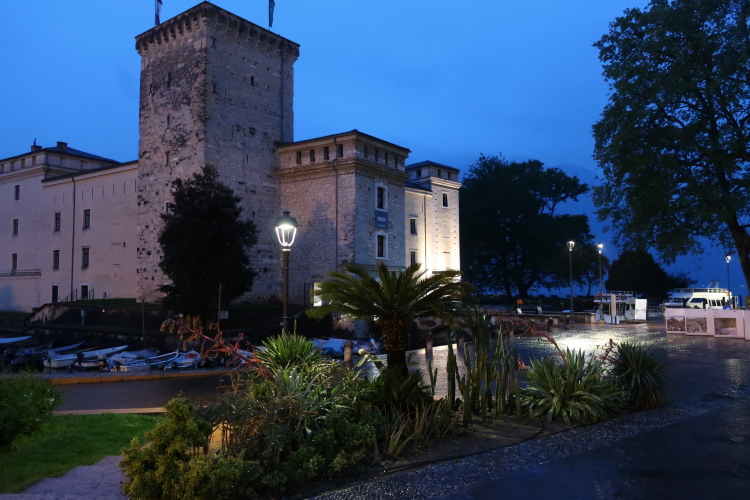 Für die meisten Läufer ist das etwas versteckt inmitten von üppigem Grün gelegene Centro Tennis Magnolie, gleich hinter der Rocca, der mittelalterlichen Wasserburg, der erste Anlaufpunkt. Wer nicht schon am Vorabend beim kollektiven Schmaus in einem Lokal in Linfano bei Arco seine Startnummer abgeholt hat, bekommt sie hier. Das gilt auch für mich. Nach kritischer Würdigung meines Konditionsstandes habe ich mich für den Marathon anstatt für den 60er entschieden, wenn auch schweren Herzens. So habe ich aber morgens etwas mehr „Luft“ und die genieße ich in einem Cafe an der Uferpromenade von Riva.