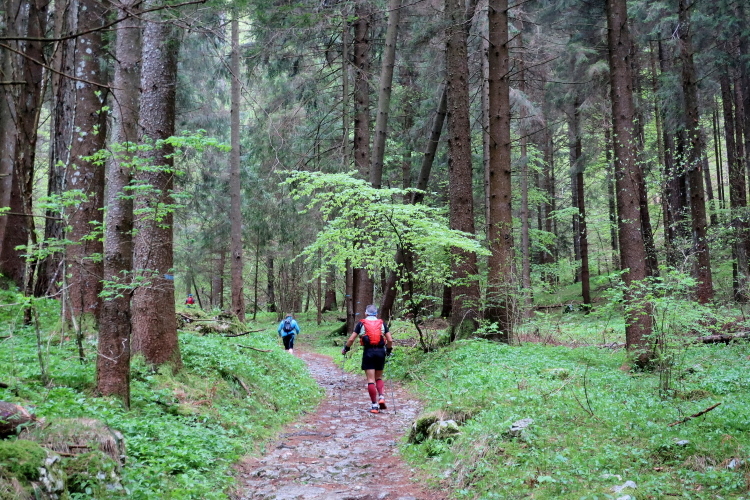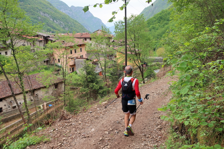 Im Auf und Ab geht es weiter durch das waldige Val di Ledro, bis wir bei km 23,5 das idyllische Dorf Prè di Ledro erreichen. Bis 17:15 Uhr muss man es hierher geschafft haben, sonst droht vorzeitig das DNF. Aber noch ist genug Zeit.