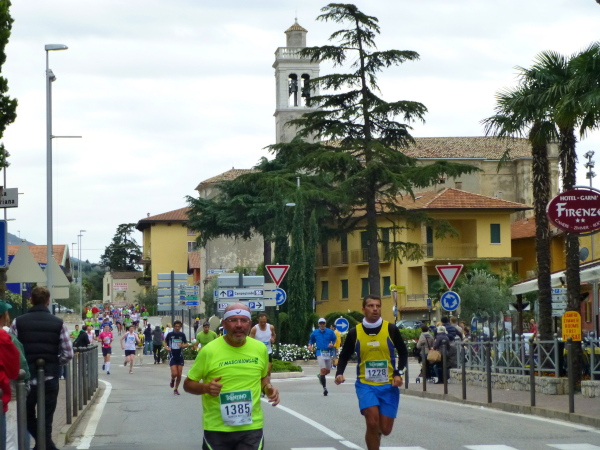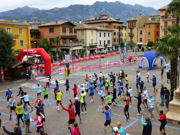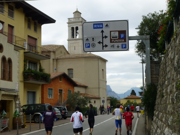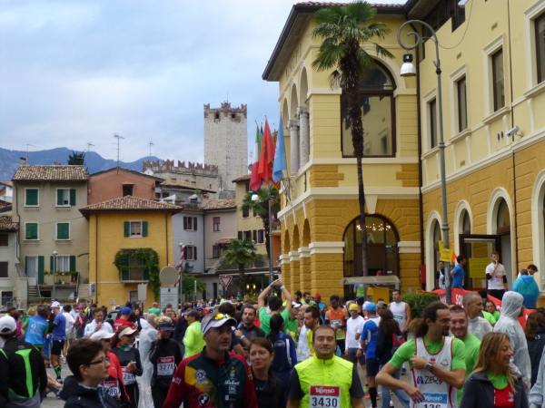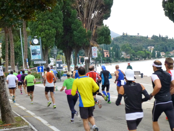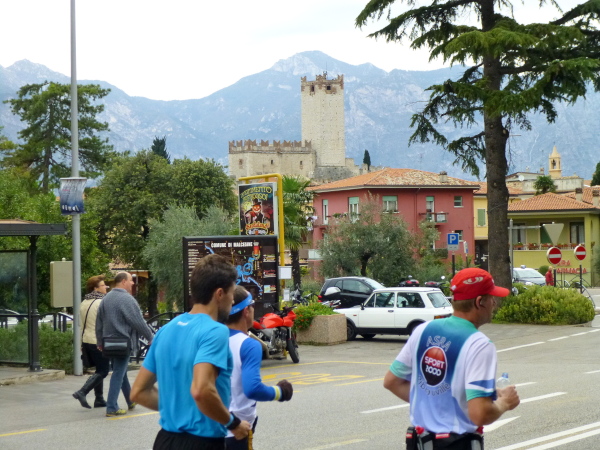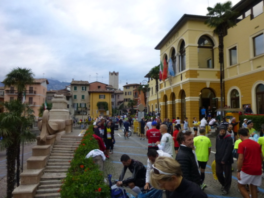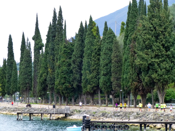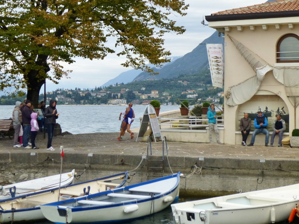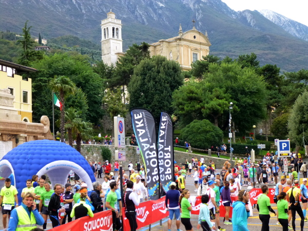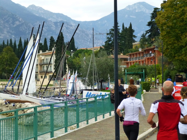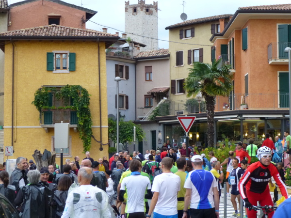 Am Laufsonntag sind es allerdings Läuferhorden, die schon früh morgens die Bewohner aus ihrer Ruhe reißen. Zu Hunderten strömen sie herbei, von den Parkplätzen am Ortsrand oder auch vom Fähranleger, wo eine bereits nächtens vom Zielort Torbole gestartete Sonderfähre anlegt.