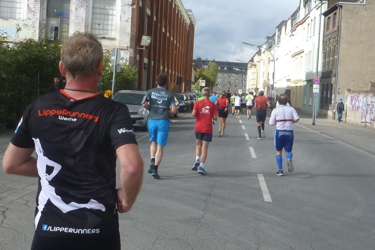 Aus dem Jugendkulturtruck Techno-Musik. 60er Jahre-Architektur, zwei Kirchen, Moschee, Hüpfburg. Kurze Begegnungsstelle auf der Amsterdamer Straße. Manfred von den „Laufmonstern“ überholt mich. Konnte ich den 76-Jährigen beim Karwendelberglauf in Mittenwald noch knapp hinter mir lassen, wird er heute das Ziel eine Minute eher erreichen – aber auch ich werde älter und dann schlage ich zurück!