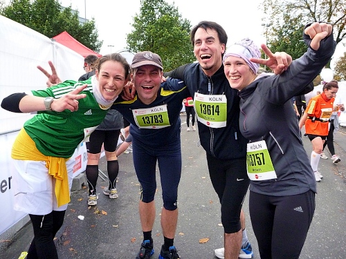 Klasse, dass Mocki (heute HM 1:16:40) wie immerseit ihrem Marathondebut 2007 in Köln (2:29:33) dabei ist. Sie wird begleitet von ihrem Bruder Markus (heute 1:11:42).