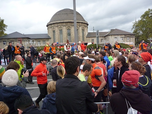 Ganz neu scheint das Sicherheitskonzept zu sein. Gab es früher ein Gedränge zwischen Kleiderabgabe und Start, so gibt es dieses Jahr sehr, sehr strenge Ordner, die penibel die Läufer in die entsprechenden Eingänge und Ausgänge weisen. Das hat hervorragend geklappt, jedoch hätte ich mir innerhalb der Hallen mehr Liberalität gewünscht, vor allem hinsichtlich der Zugänglichkeit zu den Sanitäranlagen. Aber in diesem Jahr läuft es dafür zügig und stressfreier.