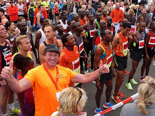 Dieses Jahr sind wir 74 Läufer, die zuerst den Halben, dann den Ganzen laufen und so auf 63 km kommen. Damit sind wir Vip´s, dürfen in der ersten Reihe zusammen mit den untergewichtigen Promis starten. Natürlich dürfen die Ultras sich auch irgendwo hinten einreihen. Ich stehe da vorne ja nur, um die Leser zu informieren.
