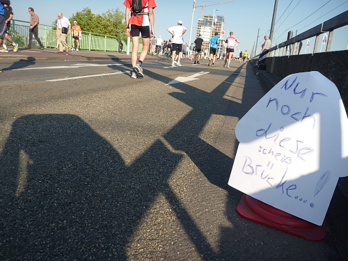 Km 31 Friesenplatz. Die Hölle ist los, Moschee, Innere Kanalstraße, Fernsehturm Colonius, Schlag auf Schlag und nur Partystimmung. Doch schon entdecke ich die ersten Halbleichen. Mir egal, ich bin fit und überhole alle, die überholen mich an der nächsten Partystelle bestimmt wieder.