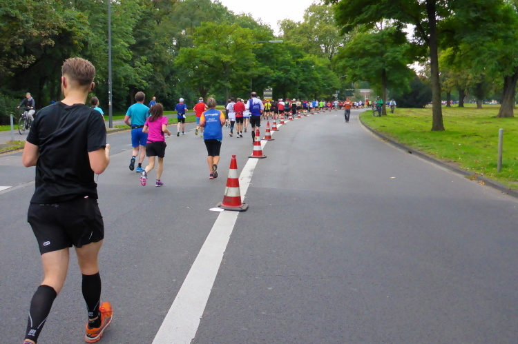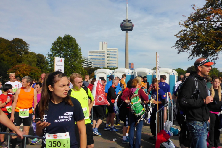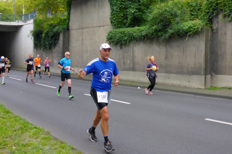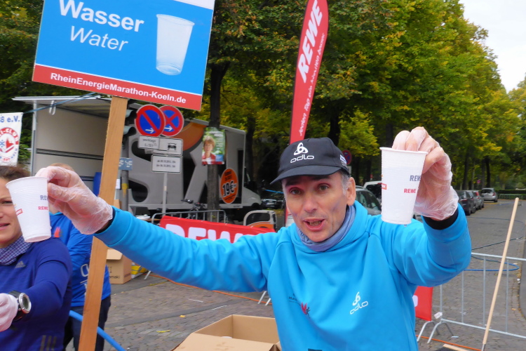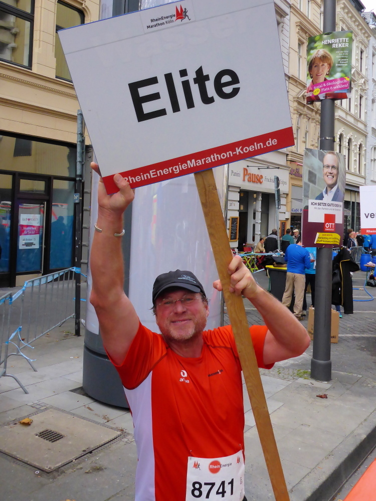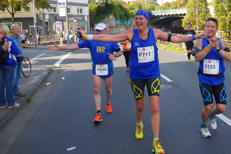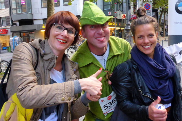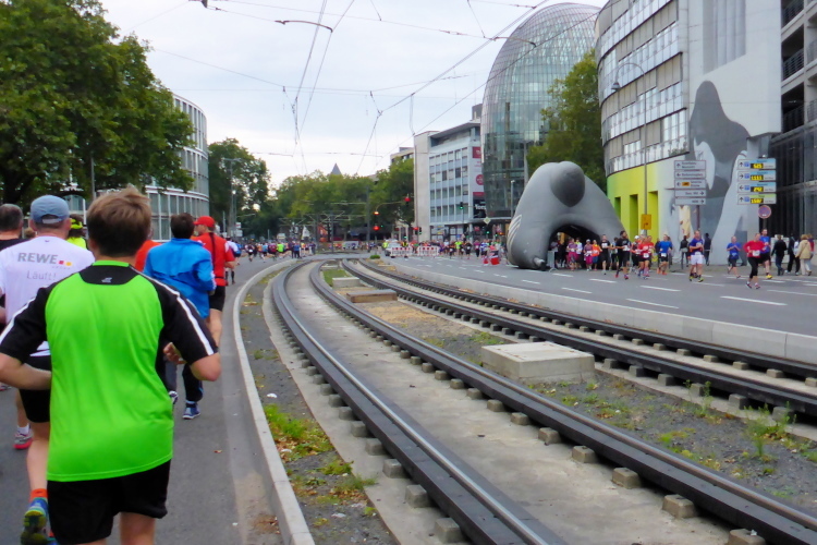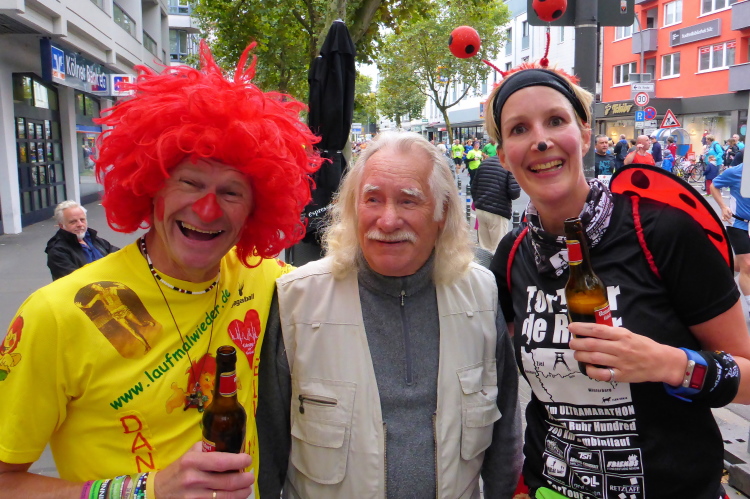 Ich höre Schreie und Fluchen. Was ist passiert? Auffahrunfall! Denn, jeder, der mich kennt, macht jetzt Vollbremsung mit Einkehrschwung, das gibt Unruhe im Läuferfeld. Irgendwer erzählte mir Stunden später, er hätte den Pumuckl auf einem der kleinen Besenwagen gesehen. Wie gesagt, in Köln ist nix normal.