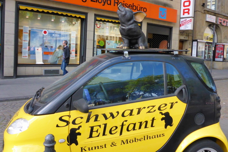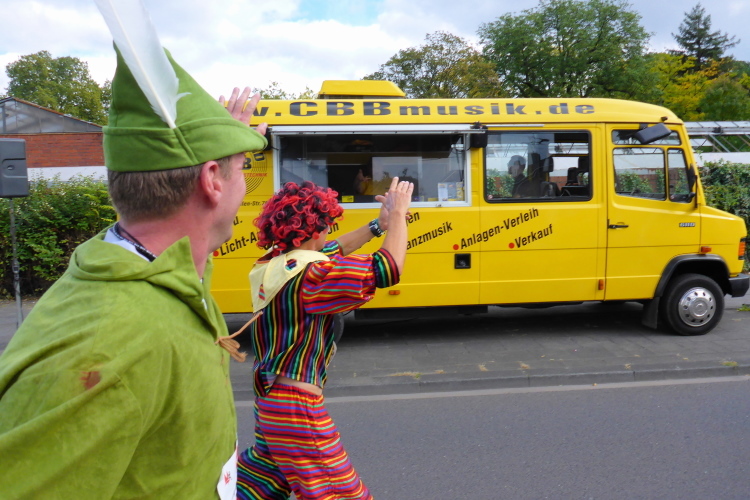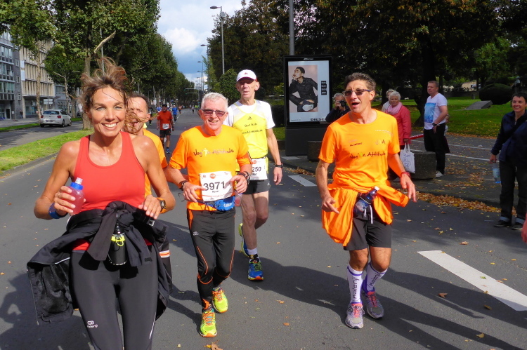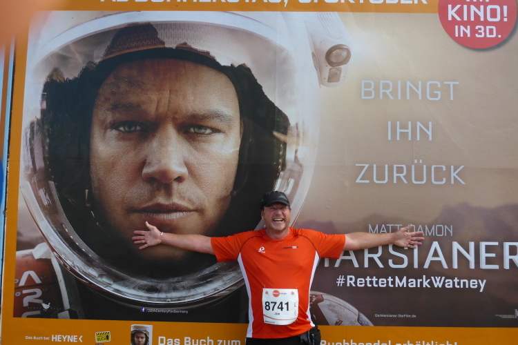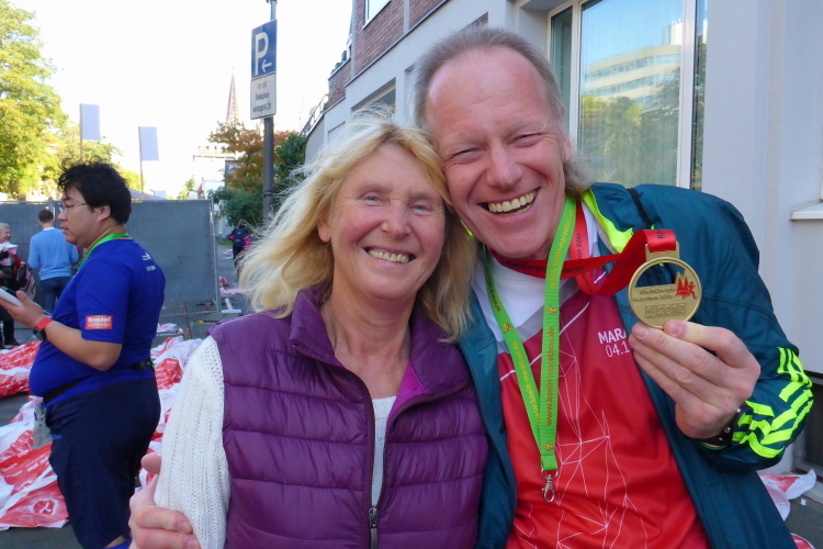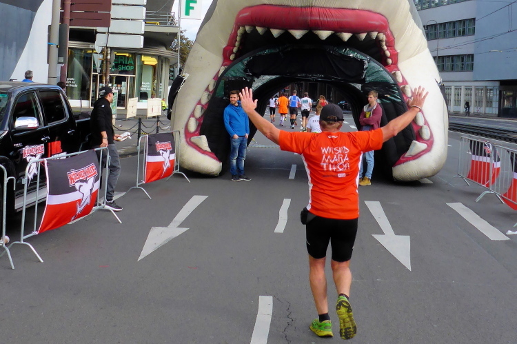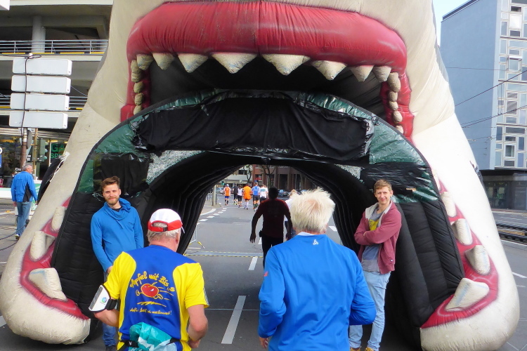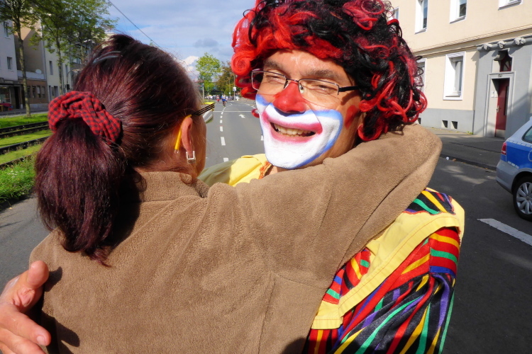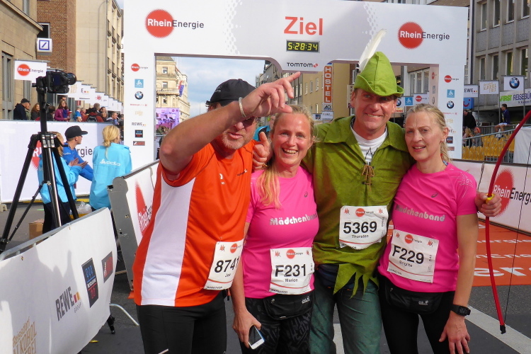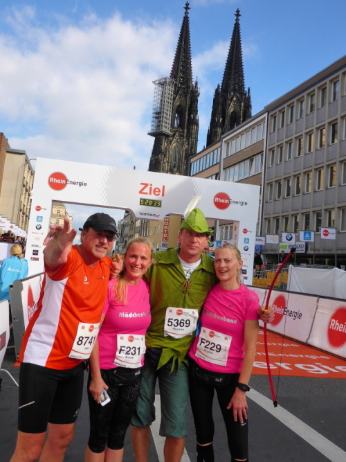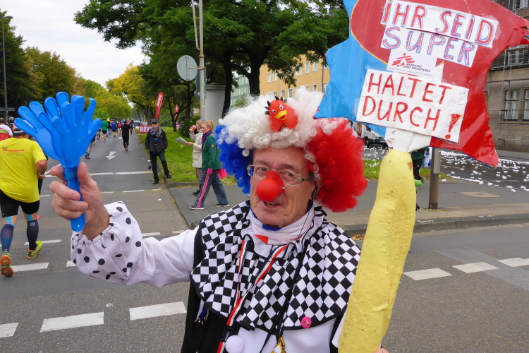 Ich höre Schreie und Fluchen. Was ist passiert? Auffahrunfall! Denn, jeder, der mich kennt, macht jetzt Vollbremsung mit Einkehrschwung, das gibt Unruhe im Läuferfeld. Irgendwer erzählte mir Stunden später, er hätte den Pumuckl auf einem der kleinen Besenwagen gesehen. Wie gesagt, in Köln ist nix normal.