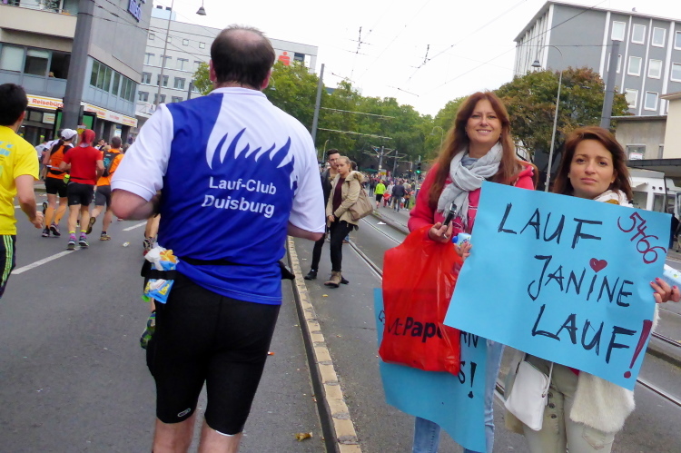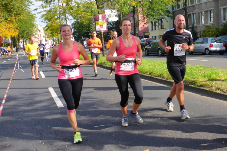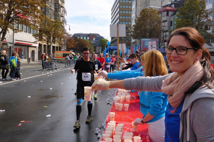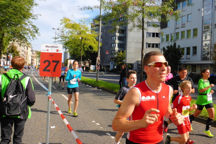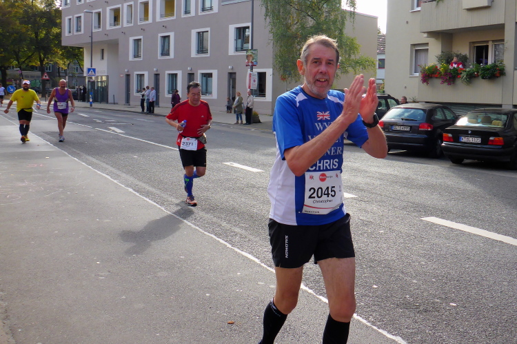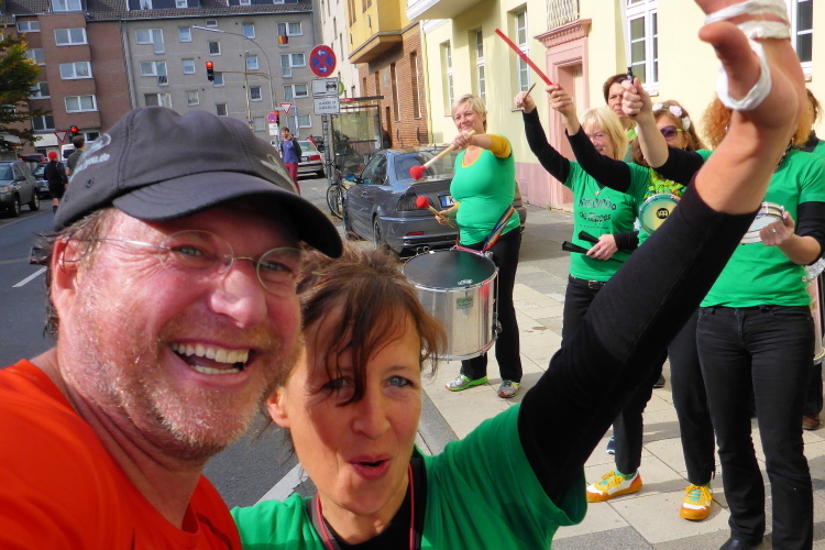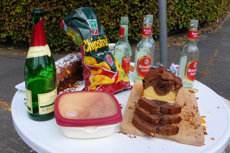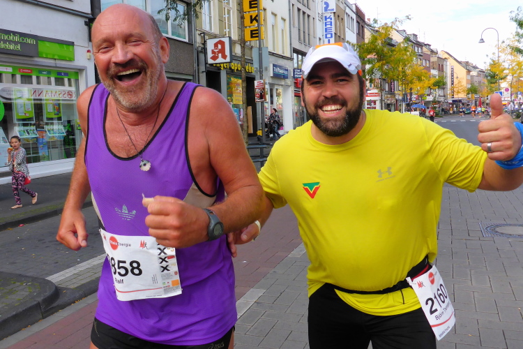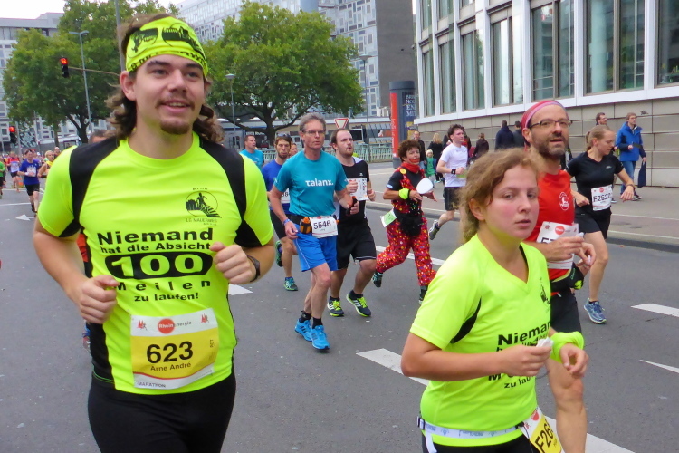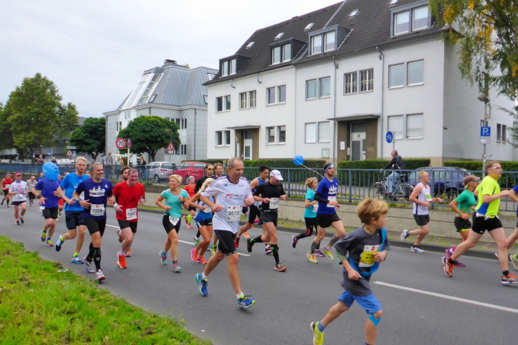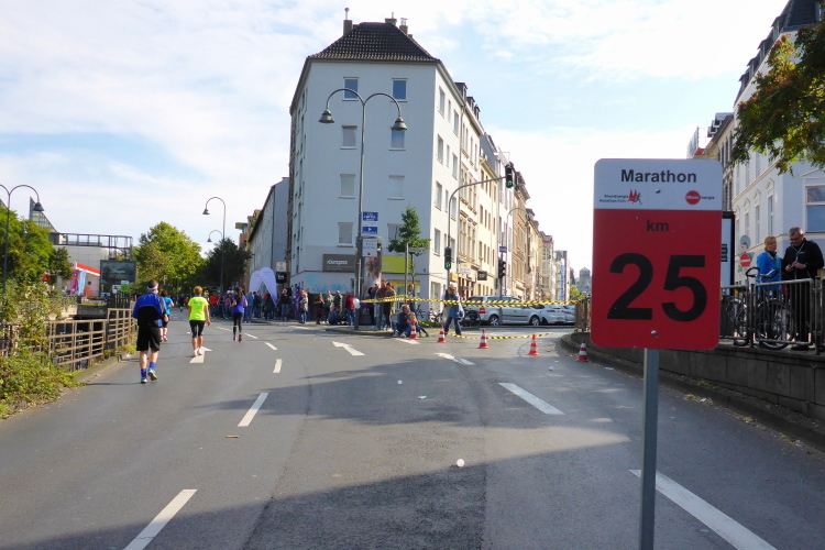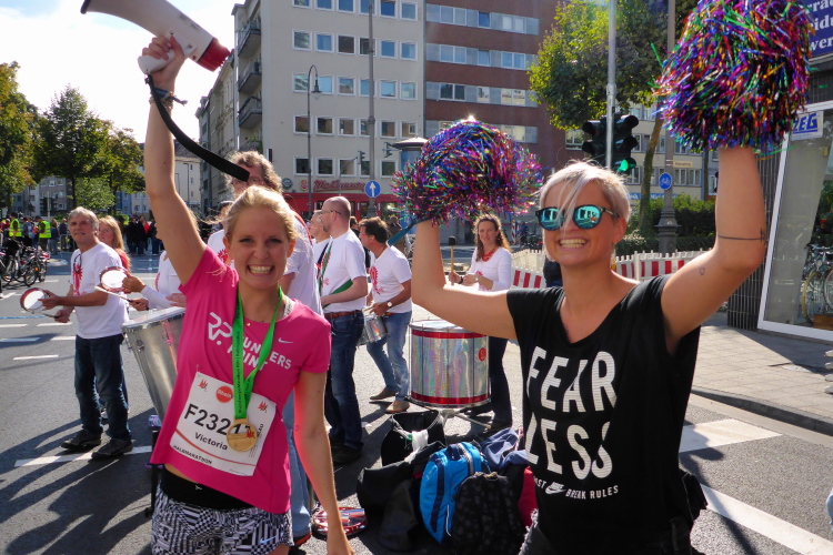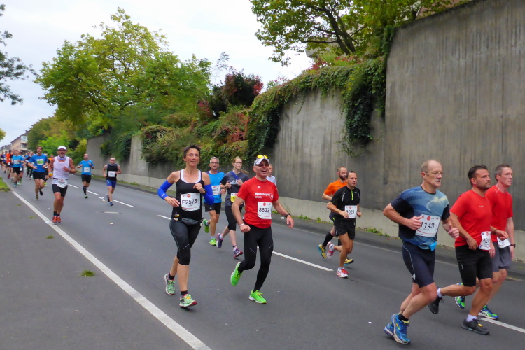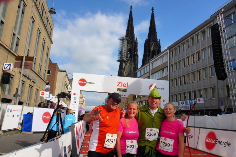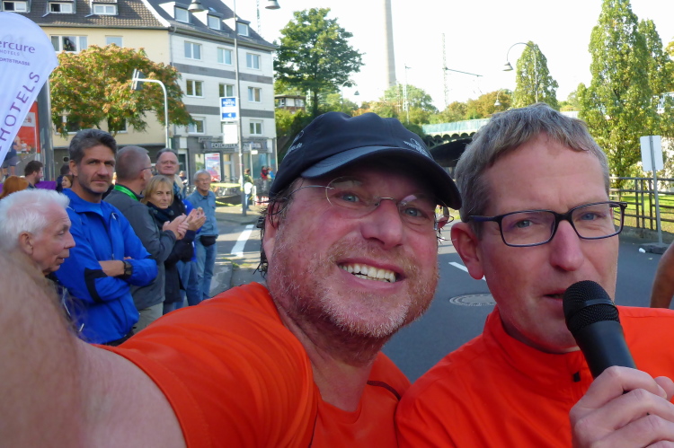Die Sonne hat sich durchgekämpft und bringt uns auch zum Schmelzen. Anwohner bringen auch was, und zwar ihren gesamten Hausstand und wollen den am Strassenrand verkaufen. Köln ist so bekloppt, die legen sogar Bananen aus und denken, dann kommen die Läufer!