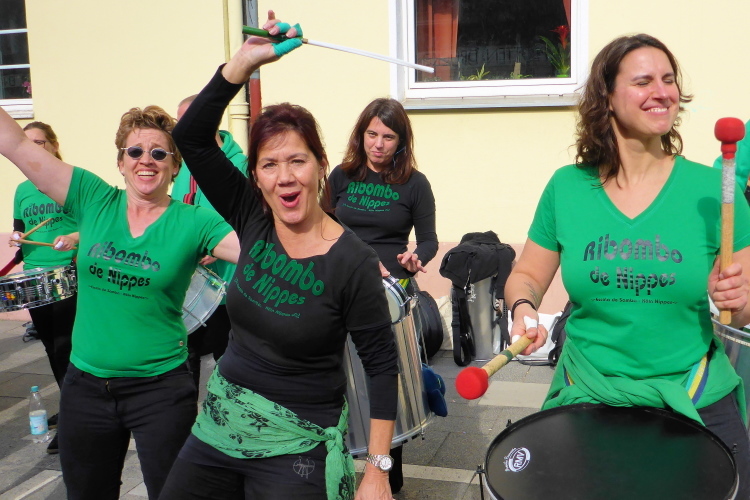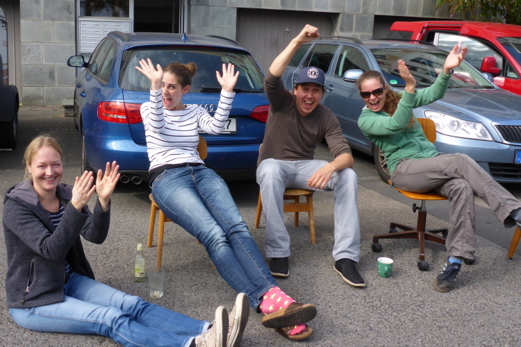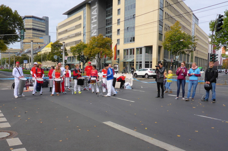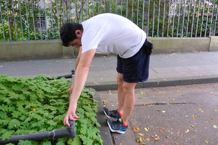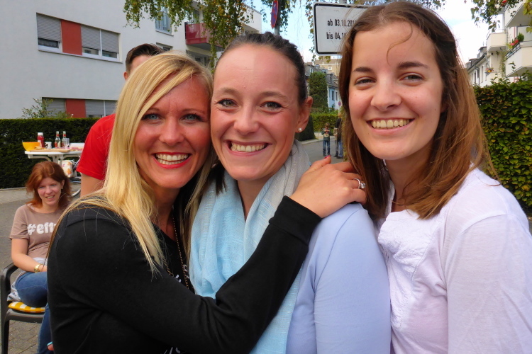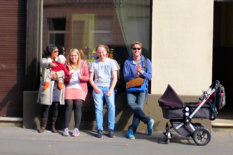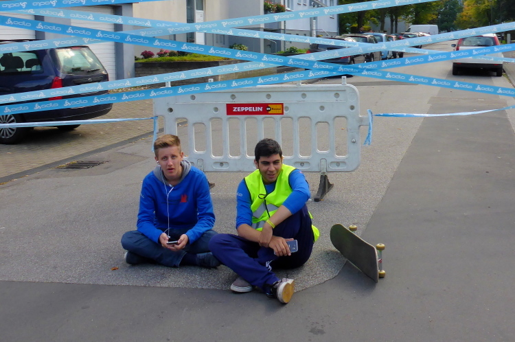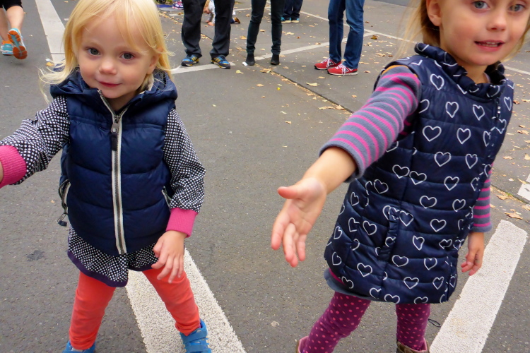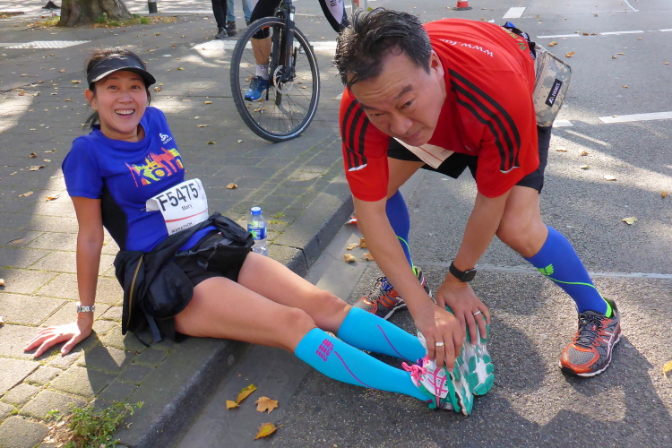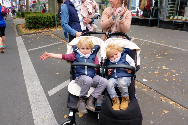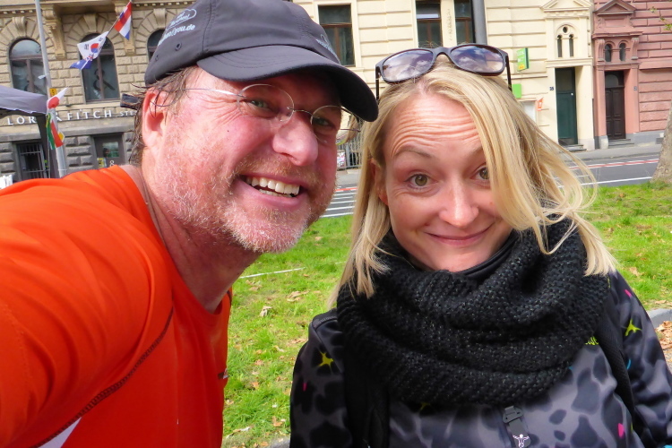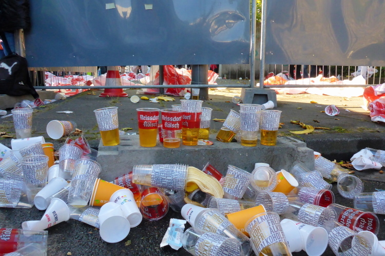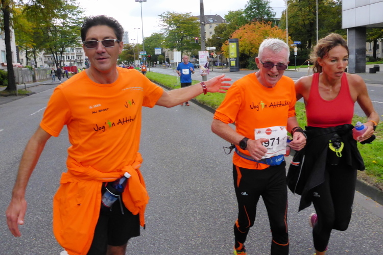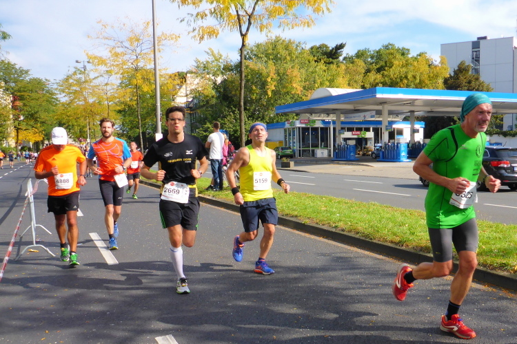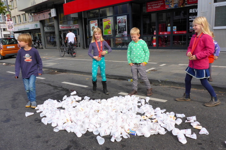Die Sonne hat sich durchgekämpft und bringt uns auch zum Schmelzen. Anwohner bringen auch was, und zwar ihren gesamten Hausstand und wollen den am Strassenrand verkaufen. Köln ist so bekloppt, die legen sogar Bananen aus und denken, dann kommen die Läufer!