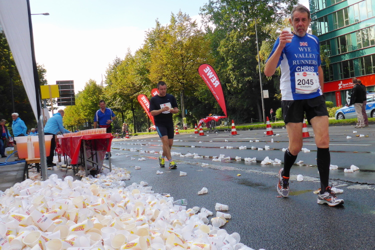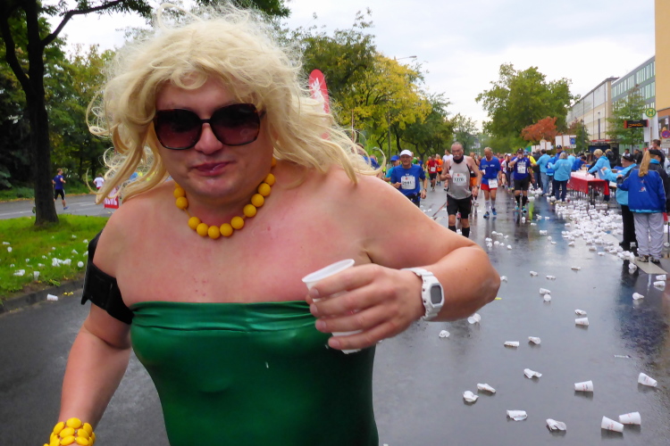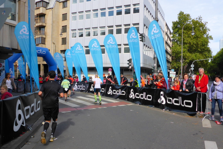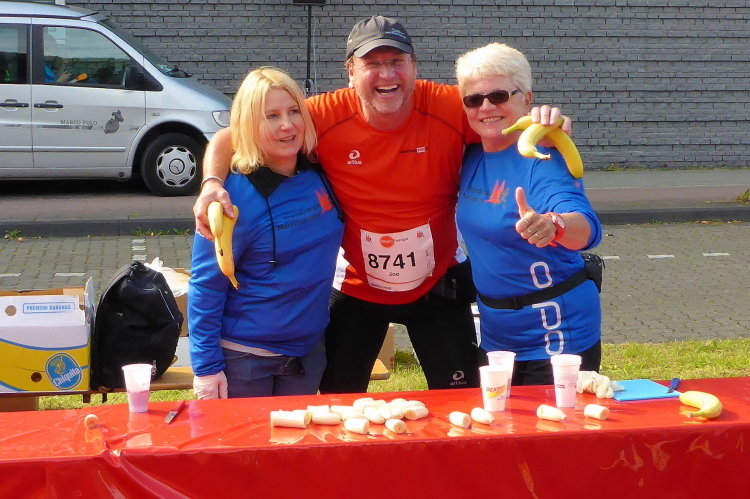 Die Zeit, die ich bei den lustigen Leuten, also meinen Fans verbringe, die hole ich teilweise an den Verpflegungsständen wieder auf, denn Bananen und Wasser bekomme ich auch zuhause. Also düse ich vorbei.