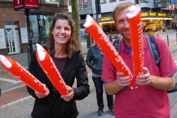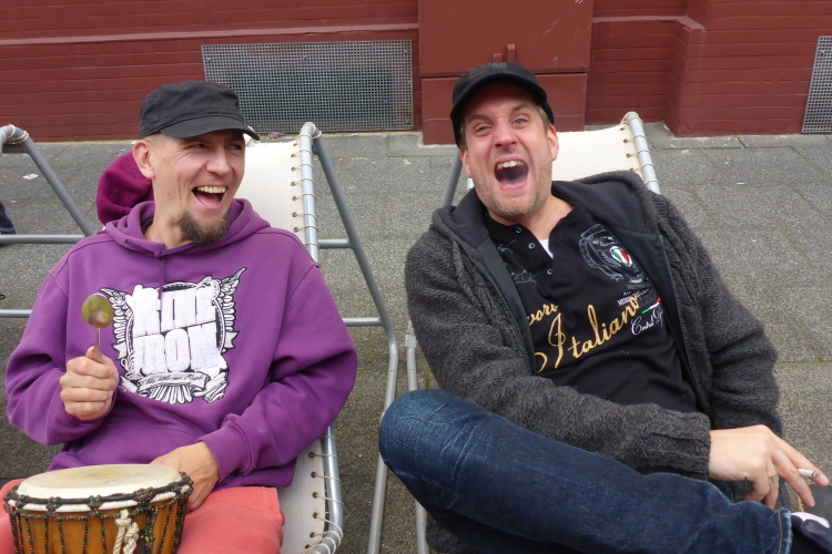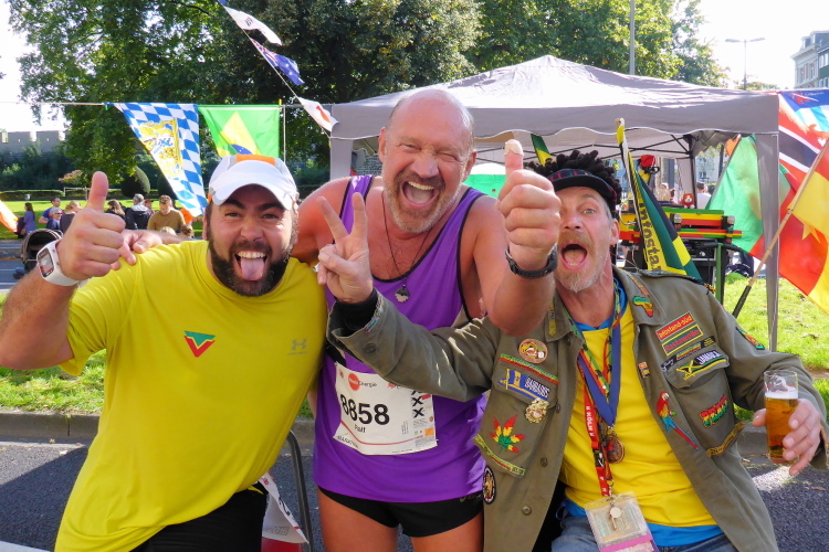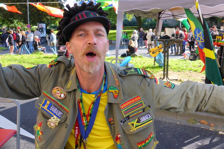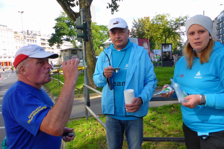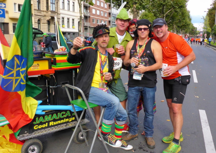Ralle und Wolle sind wie immer da! Infostand-süd.de nennen sich die beiden Rastafaries ganz harmlos. Das eiskalte Kölsch aus dem 50 Liter Fass schmeckt besser als Kerosin. Wolle wünscht mir noch einen glücklichen Weiterlauf mit eigener Leber, denn in wenigen Kilometern sehen wir uns wieder.