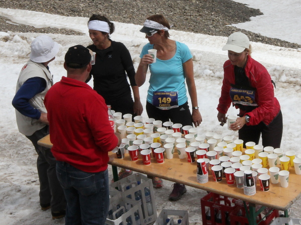 Die Staffel-Läufer(innen) sind tendenziell und logischerweise etwas schneller unterwegs als jene, die sich mental während gut 15 km auf den bevorstehenden Aufstieg vorbereiten. Es gibt eine Menge Verpflegungs- und Trinkstationen und es konnte sich bestimmt kein/e Läufer/in über Hunger oder Durst beklagen. Ab km 20 gibt es tatsächlich nach jedem gelaufenen Kilometer mindestens Wasser und Iso für die Teilnehmenden! An der Organisation ist überhaupt nichts auszusetzen.