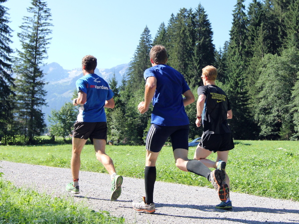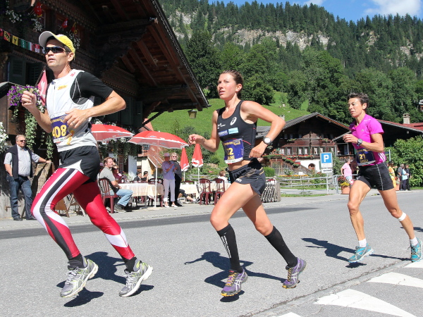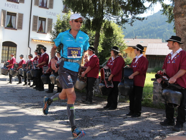 Auf einer Wiese rutschte der Läufer vor mir aus und „spulte“ regelrecht an Ort und Stelle. Ich war überrascht, dass er sich irgendwie auf den Beinen hielt und sich schliesslich fangen konnte und weiterlief. Ich malte mir aus, wie ich an seiner Stelle in den Dreck gestürzt wäre. Jeder hätte fortan sehen können, welches Malheur mir passiert war. Glücklicherweise blieb mir das erspart – was ich meinen guten Schuhen zuschreibe. Oft trifft man auf Ansammlungen von Zuschauern, die einen kräftig anfeuern. In Gsteig werden die Läufer mitten im Dorf von einer Art „Kuhglocken-Spalier“ empfangen, welche jedem beherzten Bergläufer eine kleine Gänsehaut über den Rücken jagt.