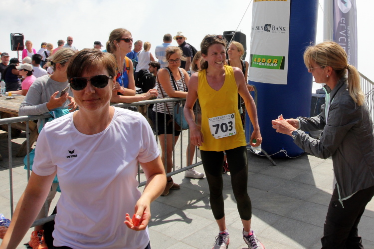 Gleich bin ich im Ziel. Ich sehe schon die Bauten auf dem Scex Rouge und dann die Treppen. Die ersten Stufen sind sauhoch. Langsam gehen, nur keinen Muskelkrampf bekommen. Zuschauer feuern uns an. Dann noch zwei steile Alutreppen. Rechts herum, nochmals Treppen, dann bin ich im Ziel. Mann, war das hart.“