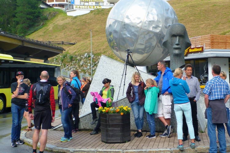 In der Nacht hat es ausgiebig geregnet. Wir gehen zu Fuß die paar Meter vom Hotel Schönblick zum Piccardsaal, um am Racebriefing um 7:30 Uhr teilzunehmen. Das Veranstaltungs- und Tagungszentrum ist nach dem Schweizer Physikprofessor Auguste Piccard benannt. Dieser landete am 27. Mai 1931 mit seinem Assistenten Paul Kipfer bei seinem legendären, in Augsburg gestarteten Stratosphärenflug mit einem Gasballon nach 17 Stunden auf dem benachbarten Gurgler Ferner.