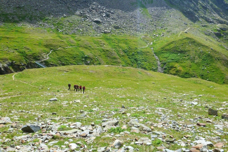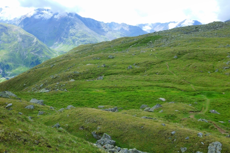 Immer wieder Schafe, die uns fast zutraulich begutachten. „Die tun nichts, die wollen nur laufen“, werden die wohl über uns denken. Der Schaftrieb über den Ötztaler Alpenhauptkamm ermöglicht es Bauern aus dem Schnals- und dem Passeiertal im italienischen Südtirol, ihre Weiderechte im hinteren Ötztal zu nutzen. Dazu werden die Schafe über drei verschiedene, teilweise vergletscherte Passrouten Anfang Juni in nördlicher und Mitte September in Gegenrichtung getrieben. Diese grenzüberschreitende Tradition wurde 2013 von der österreichischen UNESCO-Kommission als immaterielles Kulturerbe anerkannt. Bis zum Beginn des 20. Jahrhunderts wurden auch Rinder über die Pässe getrieben. Die wirtschaftliche Bedeutung der Schaftriebe hat allerdings nachgelassen: Während vor 40 Jahren noch um die 7000 Tiere aus dem Schnalstal hier weideten, sind es jetzt nur noch halb so viele. Die Routen werden übrigens schon seit 6000 Jahren genutzt.