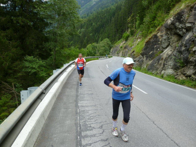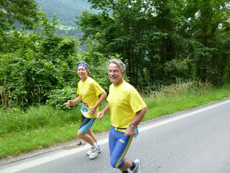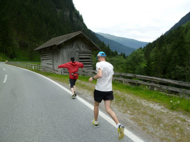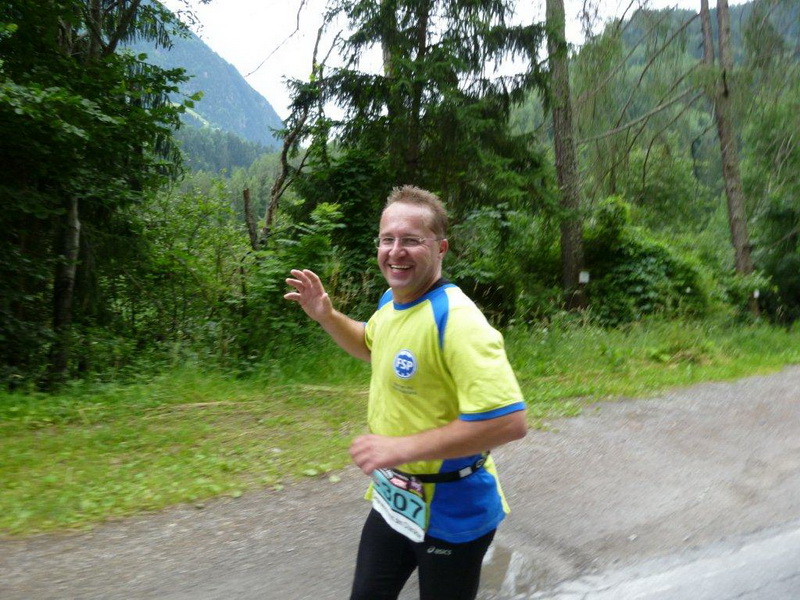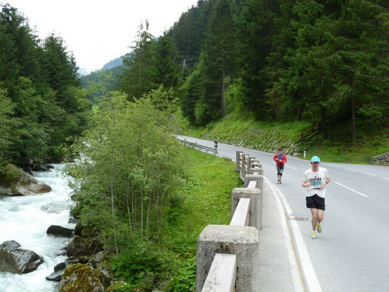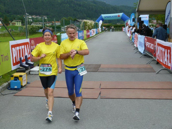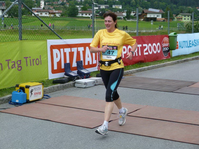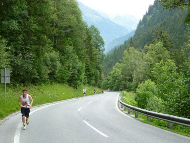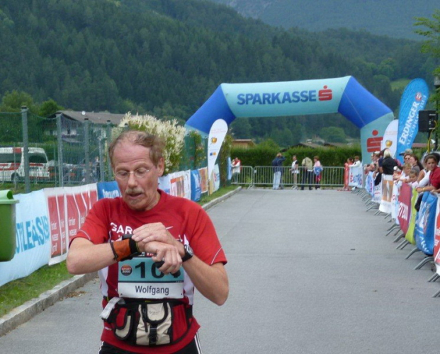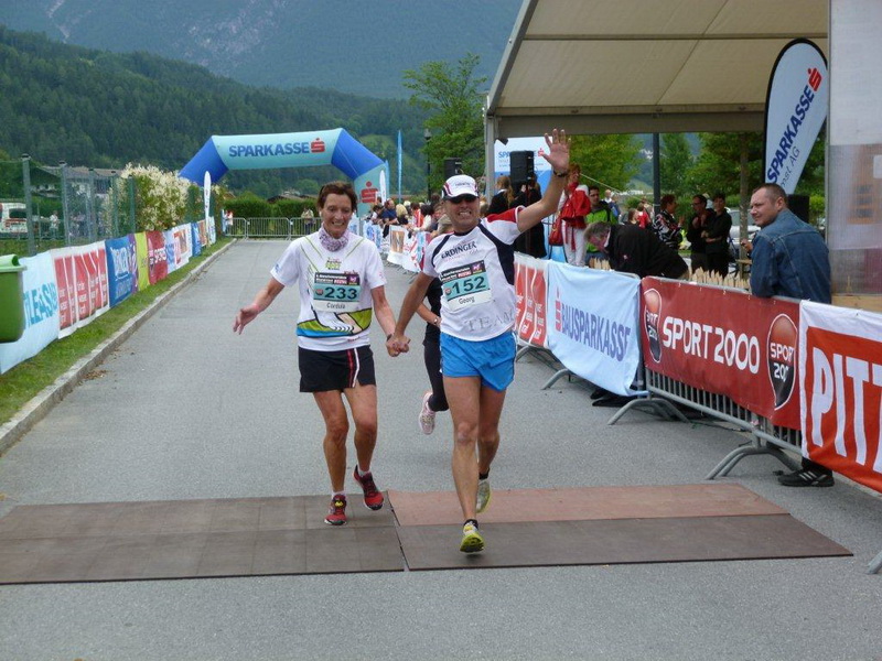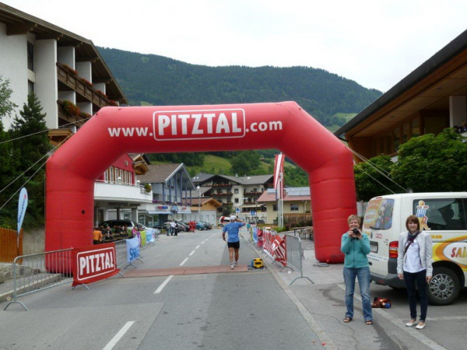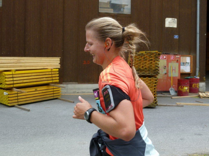 In der Ortschaft Arzl ist nicht nur reichlich Stimmung entlang der Straße, von hier aus geht es nochmals 150 Höhenmeter hinunter bis zur Brücke über den Inn. Bei Kilometer 38 höre ich das Geläut der Kirchenglocken und realisiere, dass ich bisher an keinem Kirchturm und auch sonst nirgends eine Uhrzeit wahrgenommen habe. Das Geläut wird wohl die Mittagszeit verkünden, ergo bin ich seit dreieinhalb Stunden unterwegs. Ich folgere daraus, dass eine Schlusszeit von unter vier Stunden möglich sein sollte, bin mir aber bewusst, dass es von Brennbichl bis zum Sportzentrum noch weitere drei Kilometer sind, welche gnadenlos aufzeigen, ob jemand noch ein paar Körner aufgehoben hat oder nicht.
