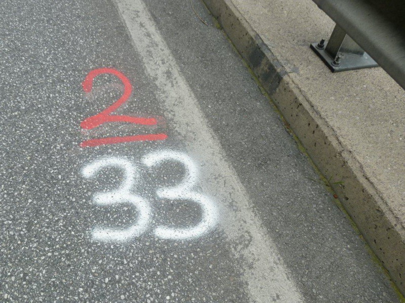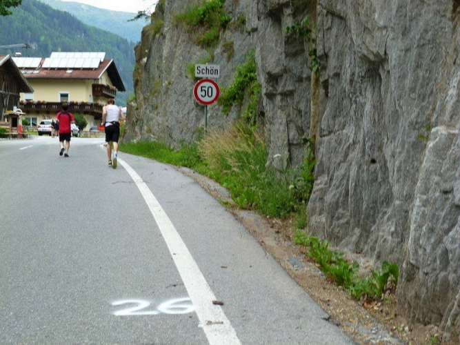 Gegen Wenns zu öffnet sich das Tal und die hoch über Imst thronende Spitze des Tschirgant gibt einen Anhaltspunkt, wie weit es gefühlt bis zum Ziel noch ist. Die Markierungen auf der Straße sind dazu die Fakten, welche nicht allen unbedingt gelegen kommen.