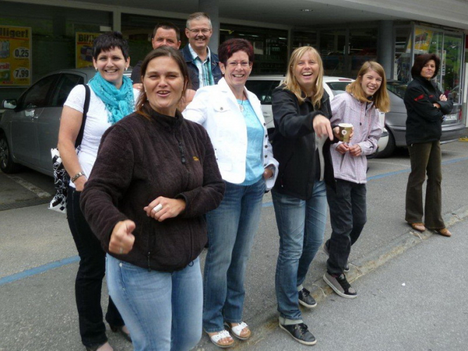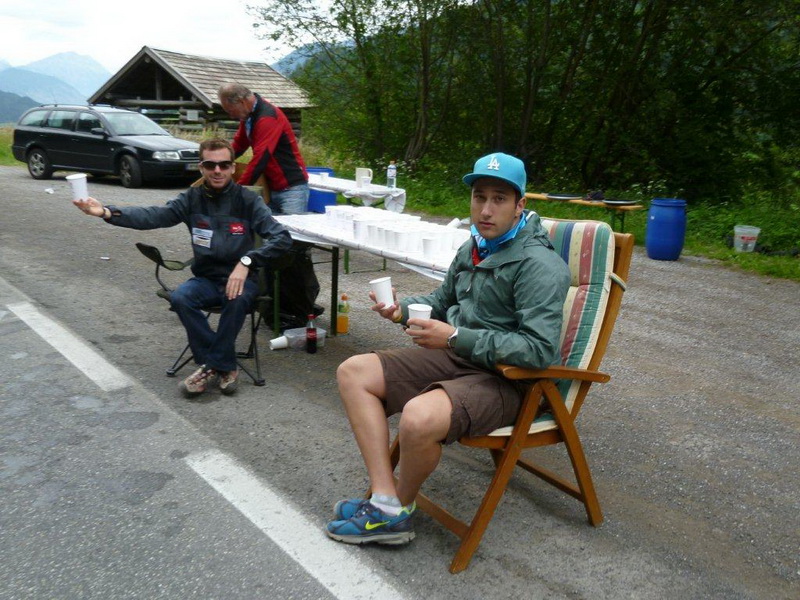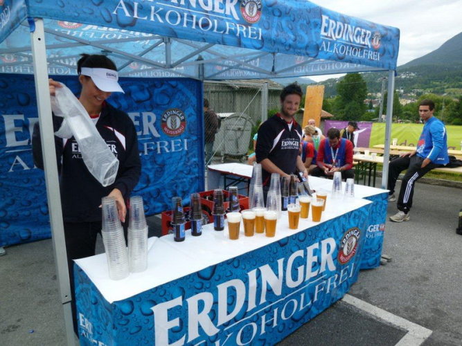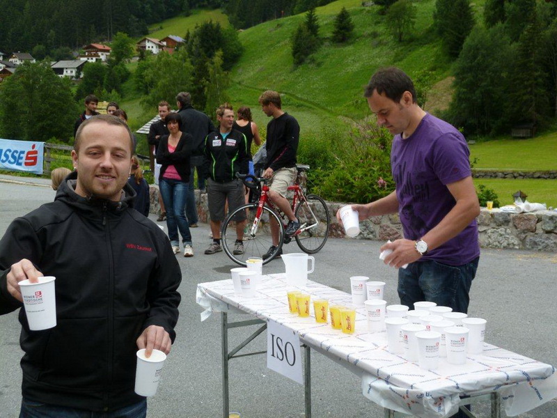 Vor dem Gasthof, in welchem ich die Nacht verbracht habe, ist nochmals eine besondere Verpflegungsstelle aufgebaut und wer will, kann ausprobieren, ob ihm der Griff zum Becher tatsächlich Flügel verleiht.