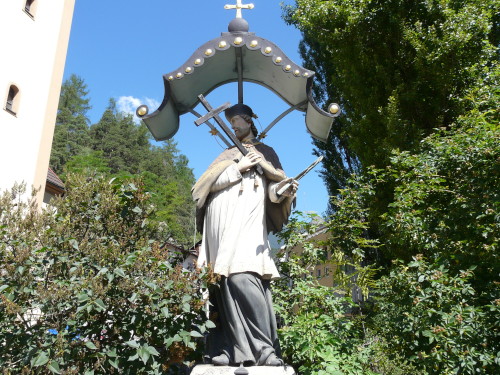 Soviel zu den Formalien. Wie komme ich nach Imst? Das 9.000 Einwohner-Städtchen liegt verkehrsgünstig an der Autobahn A 12 nach München, Innsbruck, Salzburg, Arlberg und in die Schweiz. Über den Fernpass erreicht man Imst übrigens ohne Maut. Bereits zur Römerzeit war Imst ein wichtiger Verkehrsknoten an der Heerstraße Via Claudia Augusta, die den Norden Italiens mit dem süddeutschen Raum verband. Bei einem Stadtbummel fallen einem unwillkürlich die vielen Brunnen mit den prachtvollen Heiligenfiguren auf. 35 dieser Wasserspender soll es noch heute geben. Sie stammen aus der Zeit, als die Wasserversorgung in Imst ausschließlich auf öffentliche Brunnen beschränkt war.