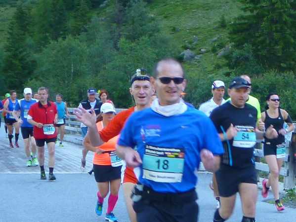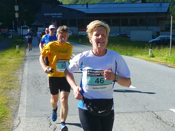 An der Talstation des Gletscherexpress wird mit einer Höhe von 1740m der höchste Punkt des Laufes erreicht. Das Feld ist schon weit auseinandergezogen. Das ganze Pitztal liegt nun vor uns und wartet darauf, durchlaufen zu werden.