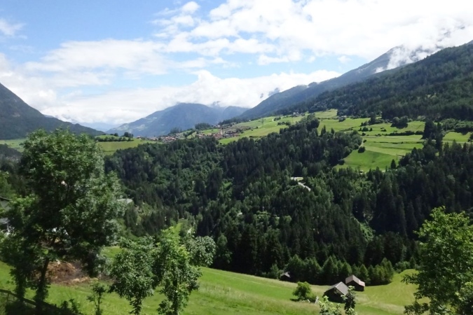 Auch ich bin da zuversichtlich, weil es beim Gletscher-Marathon deutlich länger abwärts geht und das Abwärtsgefälle trotz meiner orthopädisch eingrenzbaren Probleme mich stets beflügelt. Es dauert nicht lange und schon ist das erste Beutestück bei Tieflehn, zur Gemeinde St. Leonhard gehörig, in Sicht. In den kleinen Ortschaften sind dank des fast ganzjährigen Tourismus zahlreiche neue Pensionen und Hotels entstanden.
