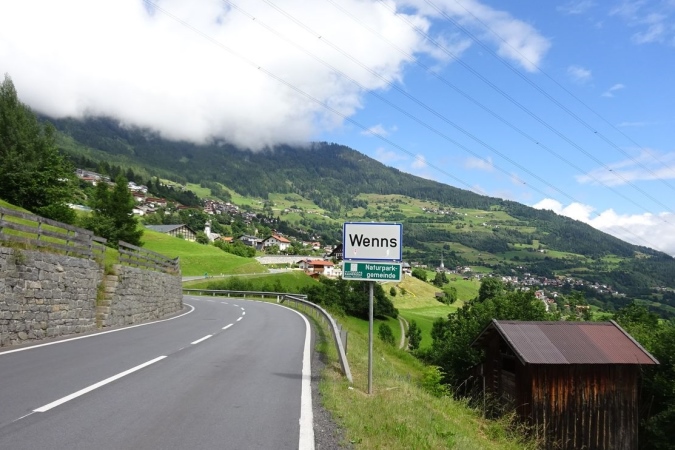 Nun folgt erneut eine längere Abwärtspassage auf dem Weg nach Wenns. Marion liegt ca. 100 m vor mir, ich hole sie bald darauf ein. Wir plauschen ein wenig, sie merkt an, dass sie schon angenommen habe, dass meine Kräfte nachgelassen hätten. Wie Recht sie hat, aber man muss ja nicht alles zugeben. Die sub 5 Stunden sollte sich heute wirklich für uns beide ausgehen. Dann aber legt sie auf einem Flachstück wieder zu und lässt mich hinter sich. Die Strecke hinauf nach Wenns weist eine beträchtliche Steigung auf. Auch Marion marschiert. Ich blicke mich um, die Fernsicht ist gewaltig. Und wen erblicke ich – fast wie erwartet kämpft sich Helena heran. Sie hat mehr Kondition als viele andere, sie wird mich früher oder später schnappen.