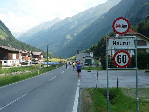 Es geht durch das Starttor und dann nach einem kleinen Aufschwung sind wir an der Pitze, die unser Begleiter für die nächsten 39 Kilometer werden wird. Die Quelle der Pitze liegt am Mittelbergferner. Und da müsste man hin, wenn man die Gletscher sehen möchte.