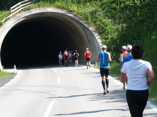 Unser Kurs geht nun durch einzelne Tunnels, wo man teilweise auf dem rechten Gehweg laufen kann. Doch aufpassen, da sind mehrere Absätze drin. Und übersehen kann man diese gleich.