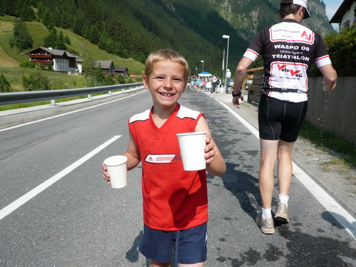Gerade in den vielen kleinen Orten stehen die Anwohner und Touristen an der Straße zum Beobachten und Klatschen. Und wenn eine V-Stelle vorhanden ist, lassen es sich die Kinder nicht nehmen, mitzuhelfen und die Getränke auszuteilen.