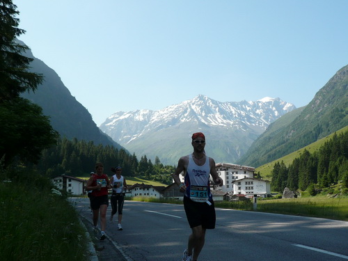 In Mandarfen bekommt die Moderatorin dieses auch mit. „Da müssen wir uns noch über die Startnummern und das Startgeld unterhalten,“ höre ich über Lautsprecher. Die Ausblicke sind toll. Links sehen wir den Kaunergrat, rechts den Geigenkamm mit Gipfeln, die alle die 3000 Meter überschreiten. Die Watzesspitze mit 3592 Meter ist die höchste Erhebung.