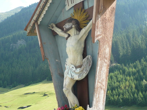 Linkerhand in einem Pferch sehe ich dann einen Esel, der auf Zuruf neugierig angelaufen kommt. Ab St. Leonhard (1366 Meter) wird das Pitztal allmählich breiter, auch wird die Vegetation üppiger. Kein Wunder, denn die Durchschnittstemperatur wird höher. Auch wir merken mittlerweile, dass die Temperatur nach oben geht.
