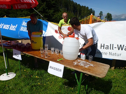 Immer weiter steil bergan geht es an der Kneißlhütte vorbei und dann wartet nach einem kurzen flachen Erholungsstück an der Station Halsmarter (1560 Meter) eine Tankstelle. Wer Zeit hat, kann in der Wirtschaft gleich einkehren. Das können die ersten Läufer der wenigen Staffeln ausnutzen, denn sie übergeben an den zweiten Mann bzw. Frau. Hier machen ein Moderator und die vielen Zuschauer Stimmung.